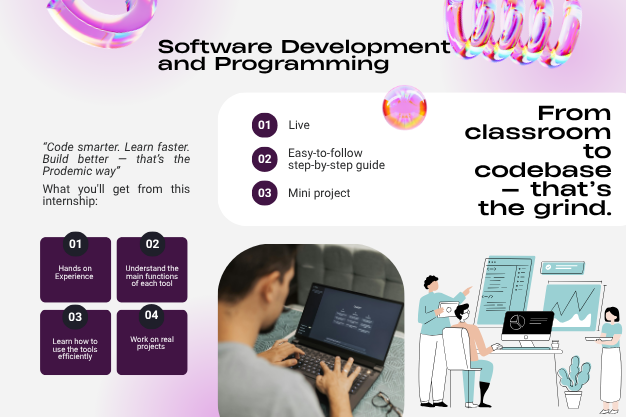 The Software Development & Programming Internship builds core coding skills and real-world experience through hands-on projects using Python, JavaScript, or Java. Interns learn Programming basics, version control (Git), collaborate in teams, and work on full-stack or backend projects to prepare for junior developer roles.
